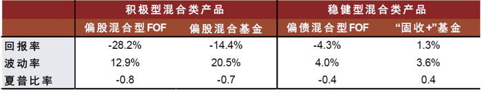 图表26:国内混合型产品定位下FOF与混合基金的风险业绩对比