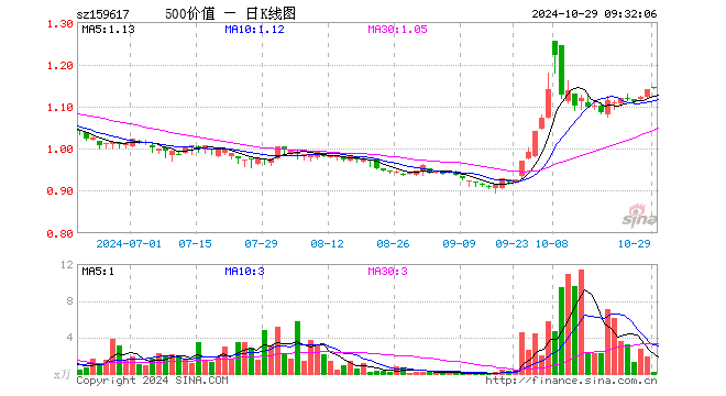 10月29日,500价值ETF(159617)开盘涨0.35%,报1.145元。500价值ETF(159617)重仓股方面,贵阳银行开盘涨0.50%,豫园股份涨0.16%,森马服饰涨0.45%,吉林敖东涨0.29%,厦门国贸涨0.15%,长沙银行涨0.00%,上海建工涨0.81%,衢州发展涨1.12%,健康元涨1.12%,郑煤机涨1.26%。