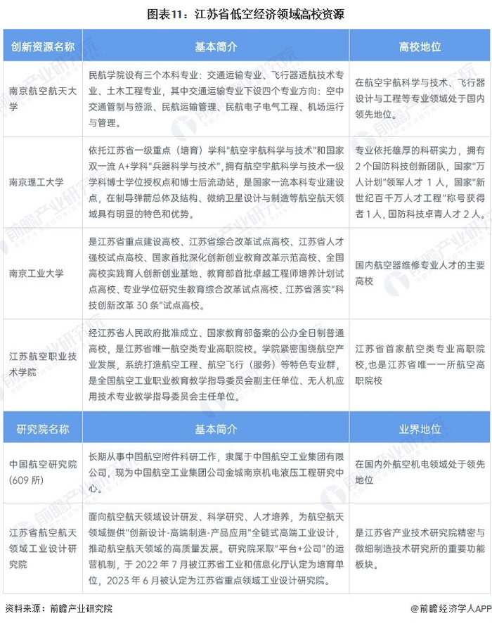 南京理工以及南京工业大学两所大学都能为低空经济产业提供科研支持。江苏航空职业技术学院是全省首家航空类专业高职院校,也是江苏省唯一一所航空高职院校,有利于培养复合型航空职业技术人才。