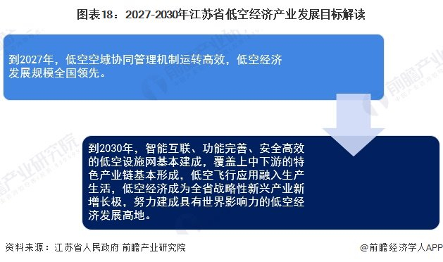 2024年8月,江苏省人民政府发布《江苏省低空经济产业高质量发展行动方案(2024-2027年)》,提出到2027年,低空空域协同管理机制运转高效,低空经济发展规模全国领先。到2030年,智能互联、功能完善、安全高效的低空设施网基本建成,覆盖上中下游的特色产业链基本形成,低空飞行应用融入生产生活,低空经济成为全省战略性新兴产业新增长极,努力建成具有世界影响力的低空经济发展高地。