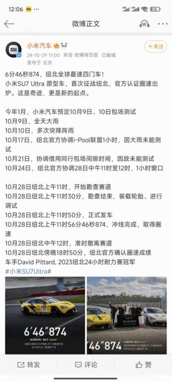 今天上午11点,小米汽车微博详细列举了首次征战纽北的“坎坷经历”,包括突然下雨等。小米汽车表示,这是奇迹,更是新的起点。