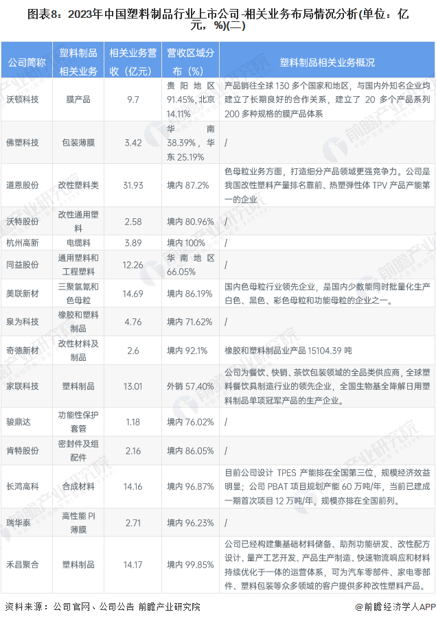 在中国塑料制品行业中,上市公司业务主要集中在改性塑料、专用树脂和包装薄膜等细分领域。金发科技、普利特、国恩股份等龙头企业在改性塑料领域占据优势,凭借广泛的生产基地和技术创新能力,巩固了市场地位。然而,表中其他企业如江苏博云、佛塑科技、奇德新材等,其相关业务规模虽相对较小,但在特定领域具有独特的竞争优势,如高性能材料和特种树脂等。这种多样化的业务布局导致行业内企业竞争激烈,市场集中度较低。未来,企业的技术创新和国际化扩展将是提高竞争力的关键。