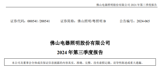 同日,佛山照明披露了2024三季度报,表现出稳健的业绩。数据显示,公司前三季度实现营业收入68.87亿元,同比增长1.33%;归属于上市公司股东的净利润2.51亿元,同比增长5.12%;归属于上市公司股东的扣除非经常性损益的净利润2.18亿元,同比下降5.39%。其中,第三季度实现营收约21.03亿元。