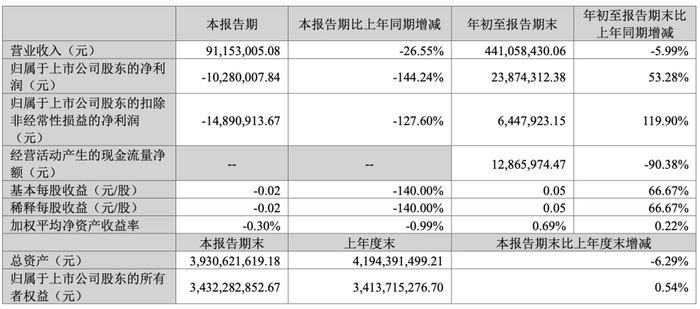 但在今年第三季度,景嘉微实现营业收入9115.30万元,同比下滑26.55%;归母净利润为-1028万元,同比转亏。