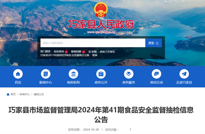 根据《中华人民共和国食品安全法》及其《食品安全监督抽检和风险监测工作规范》等规定,现将巧家县市场监督管理局2024年第41期食品安全监督抽检信息公告如下: