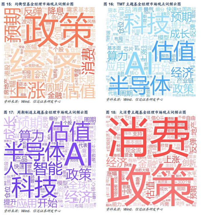 基于2024Q3信达金工基金标签结果,我们选取了不同主题的产品作为样本池,分析基金经理在季报中披露的市场观点。