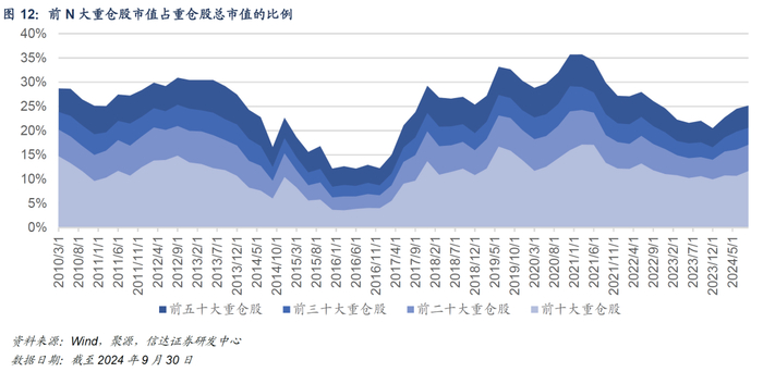 3. 基金持股集中度:重仓股集中度继续上行,选股共识提升