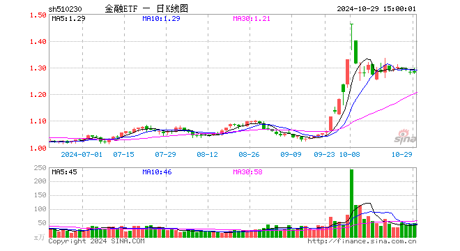 金融ETF(510230)成立于2011年3月31日,基金全称为上证180金融交易型开放式指数证券投资基金,基金简称为国泰上证180金融ETF。该基金管理费率每年0.50%,托管费率每年0.10%。金融ETF(510230)业绩比较基准为上证180金融股指数。