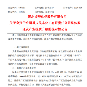 最近,重庆大型化工集团湖北振华宣布全资子公司重庆民丰化工将响应重庆市及潼南区政府的环保技改升级搬迁政策,启动整体搬迁及产业提质升级项目。