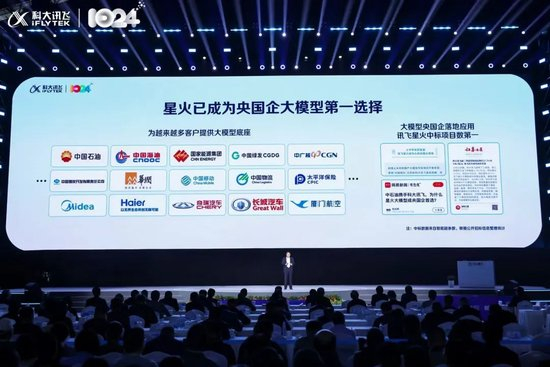 开发者节上,科大讯飞董事长刘庆峰也晒出了一张写着“央国企中标第一、教育医疗市场第一”等行业第一的大模型技术应用落地的“成绩单”,并迅速在业界引起关注。