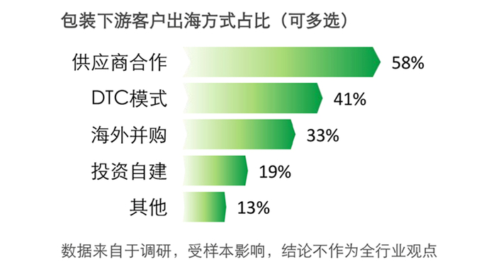 中国包装企业正积极走向全球市场,在本次调研中,出海是本土企业热议的焦点之一,87%的受访本土企业已经或计划拓展海外市场。尤其是在“一带一路”倡议的支持下,越来越多的企业选择通过海外并购、投资建厂等方式开拓国际市场。
