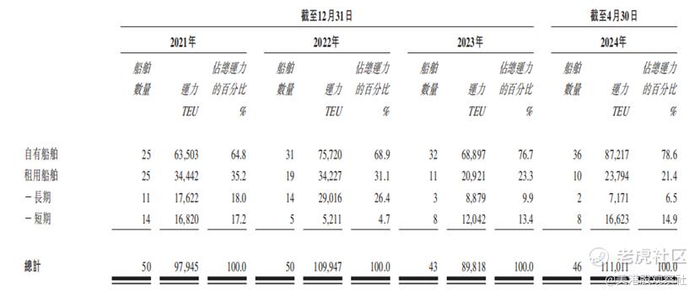 德翔海运的业务模式丰富多样,主要围绕货柜航运展开,致力于满足客户多样化的需求。公司拥有一支规模庞大且多样化的船队,截至 2024 年 4 月 30 日,共有 46 艘船舶(不包括出租船舶),总运力达 111,011 TEU。其中,自有船舶 36 艘,租用船舶 10 艘,船型涵盖了从 1,000 - 2,000 TEU 的小型船舶到 4,000 TEU 以上的大型船舶,能够适应不同港口和航线的需求。