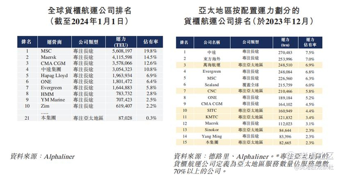 在主要成绩方面,德翔海运展现出了强劲的发展势头。按船队规模计,截至 2024 年 1 月 1 日,公司在全球货柜航运公司中排名第 21,市场份额达 0.3%;于 2023 年 12 月在专注于亚太地区的货柜航运公司中排名第六,市场份额为 2.3%。这一成绩的取得,得益于公司多年来在航运领域的深耕细作,不断优化航线、提升服务质量,以及对市场趋势的精准把握。公司的货柜航运网络已覆盖全球 21 个国家及地区的 56 个主要港口,在亚太地区更是拥有广泛的业务布局,经营着众多航线服务,为地区间的贸易往来提供了重要的物流支持。
