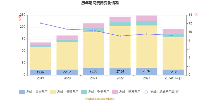 2024年前三季度,公司经营活动现金流净额为225.52亿元,同比增长7.51%;筹资活动现金流净额-181.64亿元,同比减少116.8亿元;投资活动现金流净额-235.46亿元,上年同期为-180.04亿元。