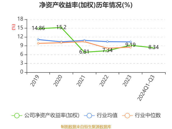 盈利能力方面, 2024年前三季度公司加权平均净资产收益率为8.34%,同比上升1.3个百分点。公司2024年前三季度投入资本回报率为5.25%,较上年同期上升1.01个百分点。