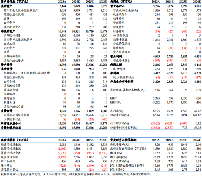 业绩符合预期。公司24Q1-3营收23.2亿元,同-45%,归母净利润18.7亿元,同-37%;其中24Q3营收5.6亿元,同环比-60%/-51%,归母净利润5.7亿元,同环比-39%/-26%,毛利率33%,同环比-28/-16pct,归母净利率102%,同环比+34/+35pct,符合预期。