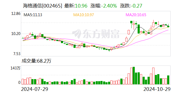 民生证券10月29日发布研报称,给予海格通信(002465.SZ,最新价:10.96元)推荐评级。评级理由主要包括:1)受形势影响公司业绩短暂承压,积极寻找业务增长点;2)北斗民品加速突破,战略协同有效推进;3)持续加深技术护城河,布局低空经济、卫星互联网、无人等创新领域。风险提示:下游客户拓展进度不及预期;卫星发射进程不及预期。