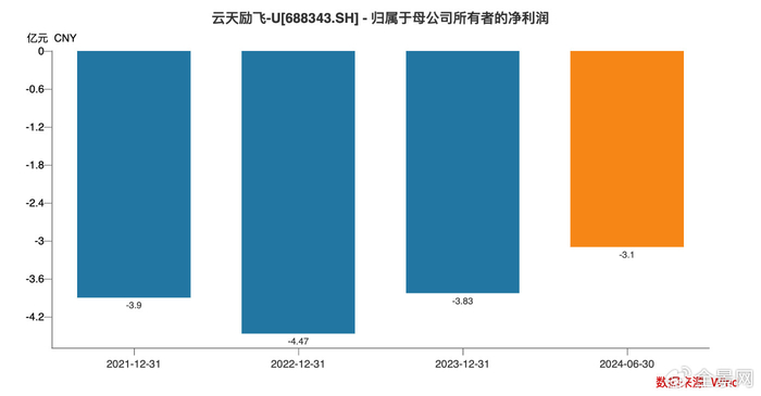 加上销售费率、研发费率分别达到了28.64%、62.54%,公司最终净亏损额度同比增长47%至3.1亿元。截至2024上半年,公司合并口径累计未分配利润为-19.02亿元,亏损额度呈现加速扩大趋势。