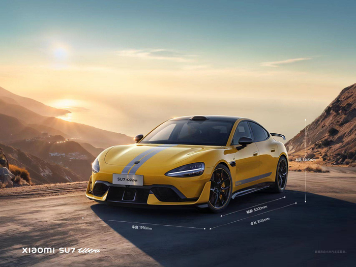 最后,小米推出了本次发布会的主角——小米SU7 Ultra量产版。据了解,小米SU7 Ultra量产版采用了全新的内饰设计,车顶、方向盘等17处采用碳纤维材料,共3.74m²,采用全新运动座椅,搭配专属赛道条纹和刺绣徽标,配色是大面积的明黄配色。