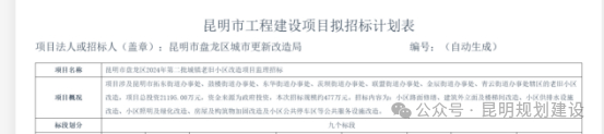 近日,昆明市盘龙区城市更新改造局在云南省公共资源交易信息网发布《昆明市盘龙区2024年第二批城镇老旧小区改造项目监理招标》计划表。
