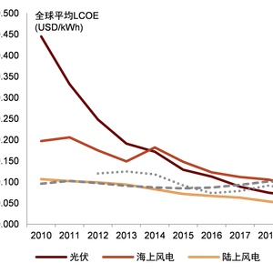 图表1:全球主要电源度电成本变化趋势