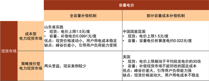 图表20: 容量电价与现货市场的可能组合