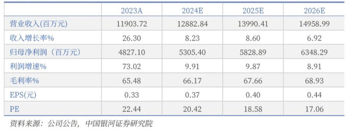我们认为,公司核心业务稳步前进,业绩增长确定性高,同时AI等相关技术的应用有望在长线助力公司提升经营效率,实现降本增效。预计公司2024-2026年归母净利润分别为53.05/58.29/63.48亿元,对应PE为20x/19x/17x,维持“推荐”评级。