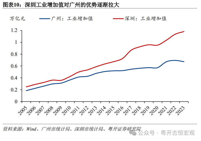 广州与深圳工业差异的背后,或体现产业环境、空间布局、人口结构的影响。