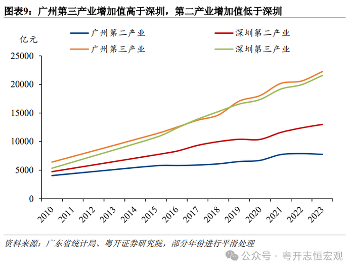 广深之间服务业的差异,需考虑城市功能、劳动生产率的影响。