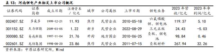 在万得锂电池板块中,河南已上市公司合计3家,分别是多氟多、天力锂能和易成新能,同时龙佰集团在锂电业务领域有布局,相关上市公司及非上市企业主要情况如下。