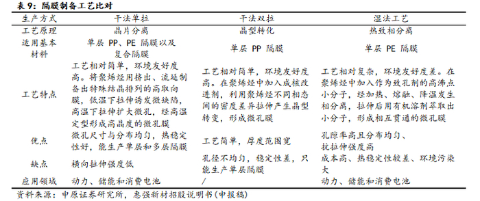 隔膜的制备工艺根据微孔结构的形成机理不同,分为干法工艺和湿法工艺两大类,其中干法工艺又可细分为干法单拉工艺和干法双拉工艺。