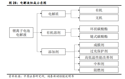 一是电解液核心在于配方,以及功能添加剂的研制与添加。电解液属于轻资产行业,其制备工艺相对简单,其核心在于配方。为提升锂电池性能及满足不同应用场景下电池特性,添加剂成为研究重点,如高/低温添加剂、成膜添加剂、导电添加剂、阻燃添加剂、耐过充添加剂等,添加剂研制需要持续研发投入及创新平台。