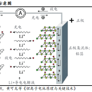 锂离子电池商业化应用起始于20世纪90年代,日本索尼公司使用焦炭作为负极材料,从而克服金属锂电池可能导致起火甚至爆炸的缺陷。锂离子电池工作原理是在充放电过程中,锂离子通过导电电解液在正极-负极-正极之间像运动员一样来回跑动,故俗称“摇椅式”电池,简称锂电池或LIB。