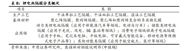公司科创板首次公开发行股票招股说明书(申报稿)显示:公司主营业务为锂电池隔膜研发、生产和销售,以干法工艺为基础,经过多年的技术积累和工艺探索,形成了三层共挤隔膜、单层隔膜和涂覆隔膜等多品种多规格的产品体系,下游应用于新能源汽车、消费电子和储能领域。截止公司招股说明披露:公司在河南驻马店、湖北武汉、湖北襄阳设立了三大制造基地,锂电池隔膜产能为6.05亿㎡。凭借良好的产品质量、规模化的生产能力,公司进入了比亚迪、鹏辉能源、海四达、星恒电源等国内重要锂电池生产商的供应体系,并成为比亚迪刀片电池隔膜的主要供应商之一。