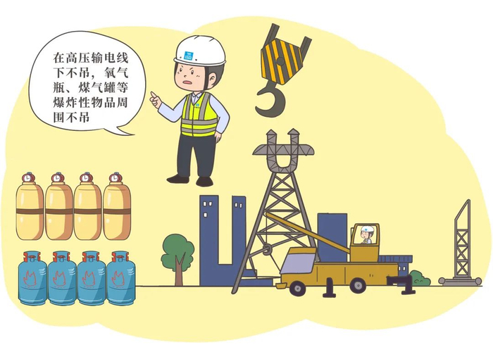 在高压电线下,氧气瓶等爆炸性物品周围不吊
