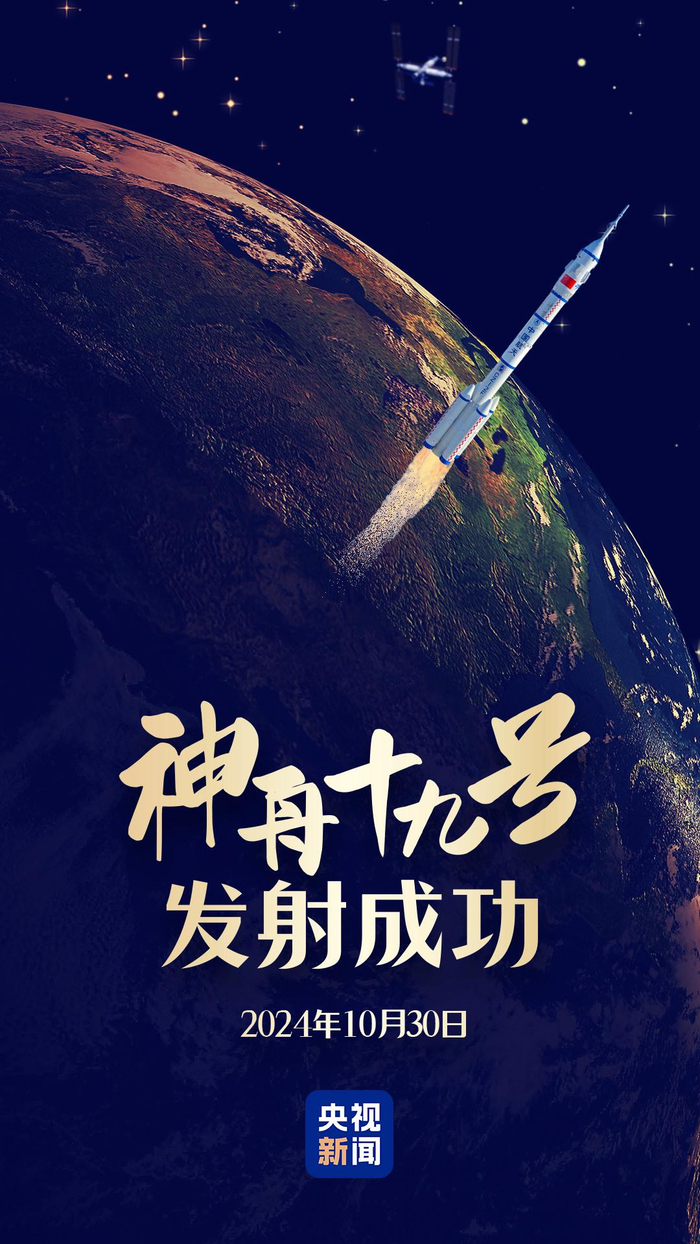 据中国载人航天工程办公室消息,北京时间2024年10月30日4时27分,搭载神舟十九号载人飞船的长征二号F遥十九运载火箭在酒泉卫星发射中心点火发射,约10分钟后,神舟十九号载人飞船与火箭成功分离,进入预定轨道,航天员乘组状态良好,发射取得圆满成功。