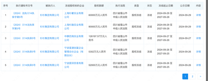 此外,杉杉集团在10起股权冻结事件中涉及杉杉股份、杉杉资管、上海杉瞿实业等多家子公司,其冻结期限为三年,执行法院为四川省眉山市中级人民法院。