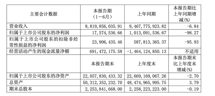 从郑驹接手后的首个年度业绩来看,表现并不尽如人意。2023年,杉杉股份的营业收入为191亿元,较上年度相比下降12.13%;净利润则大幅缩水至7.7亿元,降幅高达71.56%;扣非净利润更是仅为2.2亿元,同比暴跌90.6%。进入2024年中期,公司的业绩状况依然没有明显改善,营业收入为88亿元,同比下降6.84%;净利润更是大幅减少至1757万元,降幅达到98.27%;扣非净利润也仅为2391万元,同比下降95.93%。