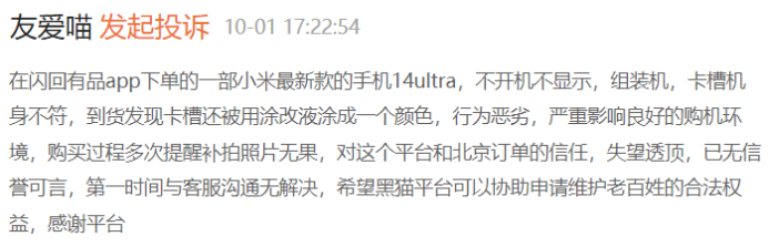 同样,向闪回收出售二手手机的消费者的投诉更不在少数。