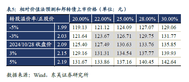 我们预计和邦转债上市首日价格在123.67~137.77元之间。按和邦生物2024年10月28日收盘价测算,当前转换平价为104.50元。