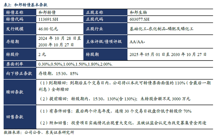 和邦转债:双甘膦领域的龙头(东吴固收李勇 陈伯铭)20241030