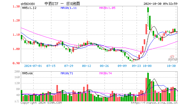 10月30日,中药ETF(560080)开盘跌0.36%,报1.113元。中药ETF(560080)重仓股方面,片仔癀开盘跌0.34%,云南白药涨0.19%,同仁堂跌1.02%,东阿阿胶跌0.59%,华润三九涨0.00%,白云山跌0.28%,吉林敖东跌0.35%,以岭药业涨0.00%,天士力涨1.15%,济川药业跌0.88%。