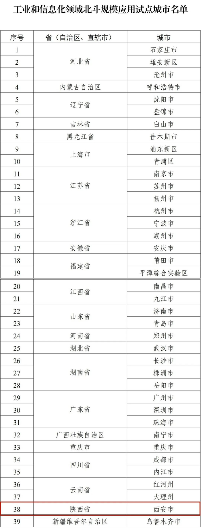 首批北斗规模应用试点城市名单