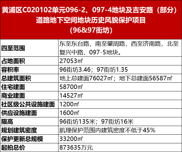 法藏讲寺地块对应的是黄浦区96、97街坊,也曾是盛传已久的翠7所在地块,起拍价就达到了87.36亿元。