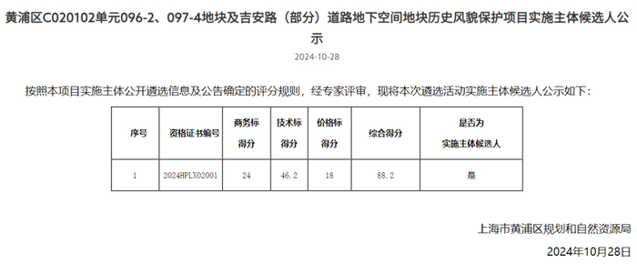 10月28日时,上海市黄浦区自然规划和资源局公布了新天地顶流翠6南侧法藏讲寺地块的实施主题候选人评分结果。