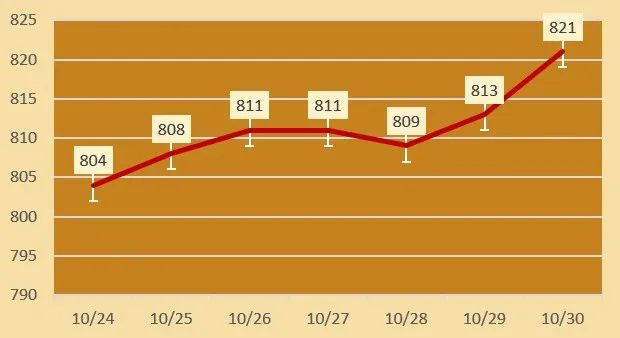 | 老凤祥 | 黄金价格 | 821元/克 | 涨8 |