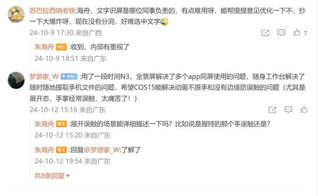 此外,OPPO 也在各类社媒听取用户意见,例如在软件产品经理朱海舟的微博中,时常能够看到采纳用户建议的评论,并且这些建议在后续的 ColorOS 更新中得以充分体现。这种 " 用户驱动" 的创新模式,不但树立起了以用户为中心的良好形象,而且让 OPPO 更加确切地了解到用户真正想要的是什么。