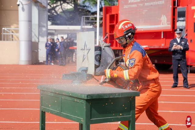 紧接着,一场消防技能展示将活动推向高潮,消防员们展示了破拆、举高喷射等救援技能,赢得了现场观众的阵阵掌声。