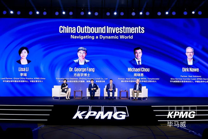 毕马威全球中国业务发展中心中国主管合伙人李瑶与嘉宾浙江华友钴业董事、副董事长及高级副总裁方启学博士,善水资本中国和中东北非地区主管合伙人周晓思,及毕马威德国交易咨询合伙人暨中德业务中心负责人Dirk Nawe一起就企业走向海外的挑战与机遇,以及我们如何应对多领域为客户提供支持深入交流。 “出海”有助于企业转型升级,通过引进先进的技术和管理经验而提升国际竞争力。毕马威也充分发挥全球网络优势,助力中国企业出海,为中国企业赋能。