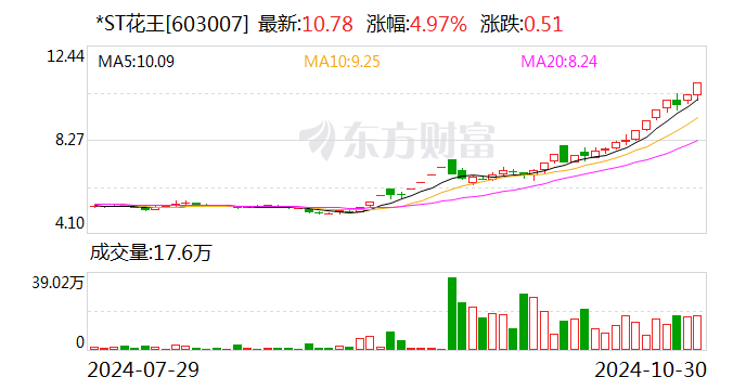 财中社10月30日电*ST花王(603007)发布重整计划草案,计划于2024年10月30日召开债权人会议。由于近年来业绩持续下滑,流动性紧张,公司面临无法清偿到期债务的风险,已于2022年5月启动预重整程序。重整计划预计将在镇江中院裁定批准后实施,若未能成功,股票可能被实施财务类退市风险警示,届时将停牌一天。